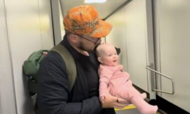 A dad amuses the internet by making his baby “apologize” to passengers after an 8-hour flight: “for what she made them go through.”
