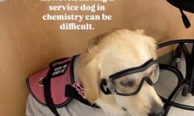 De hulphond van een scheikundestudente kreeg een speciaal speldje als erkenning voor haar buitengewone werk.