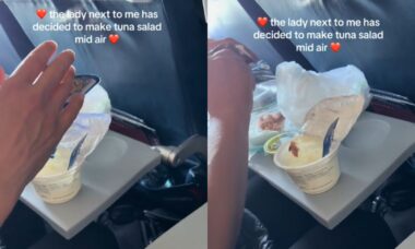 Matkustaja tallensi hetken, kun hänen viereisensä alkoi syödä tonnikalaleipää suoraan tölkistä lennon aikana. Video levisi viraalina TikTokissa.